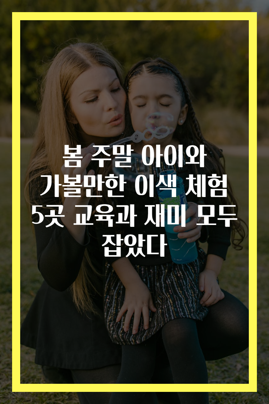 메타 설명: 이번 봄 주말, 아이와 함께 가볼만한 이색 체험 장소 5곳을 소개합니다. 교육적 가치와 재미를 동시에 느낄 수 있는 공간을 통해 특별한 추억을 만들어 보세요.