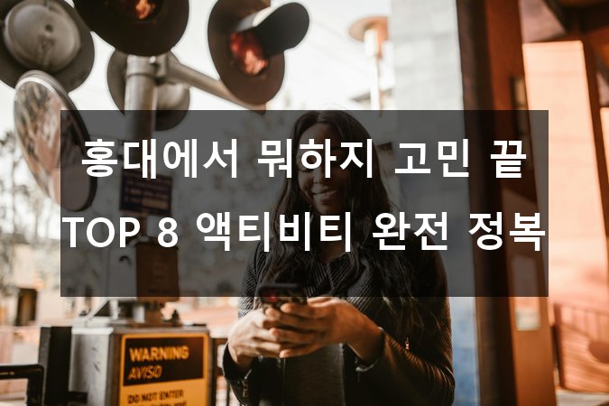 안녕하세요, 여러분! 혹시 ‘홍대에 왔는데 뭘 해야 할지 모르겠어요…’라는 생각 해본 적 있으신가요? 🤔 매일 수많은 사람들이 찾는 핫플레이스 홍대는 즐길 거리가 넘쳐나지만, 어디서부터 시작해야 할지 감이 안 잡힐 때가 많죠. 그래서 오늘은 여러분의 고민을 한방에 해결해 줄 홍대 TOP 8 액티비티를 소개해드릴게요! 😍