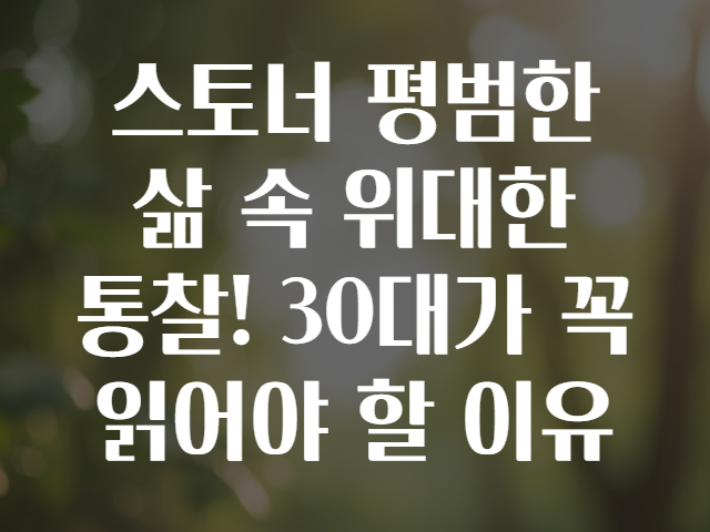 ‘스토너’는 30대가 흔히 겪는 정체성 혼란과 무기력감을 다독이는 든든한 문학적 동반자입니다. 평범함 속에 숨은 위대함을 발견하고 싶다면, 그리고 혼자 걷는 인생길에서 따뜻한 손을 내밀어 줄 이야기를 찾는다면 지금 바로 ‘스토너’를 만나 보세요! 📚💫