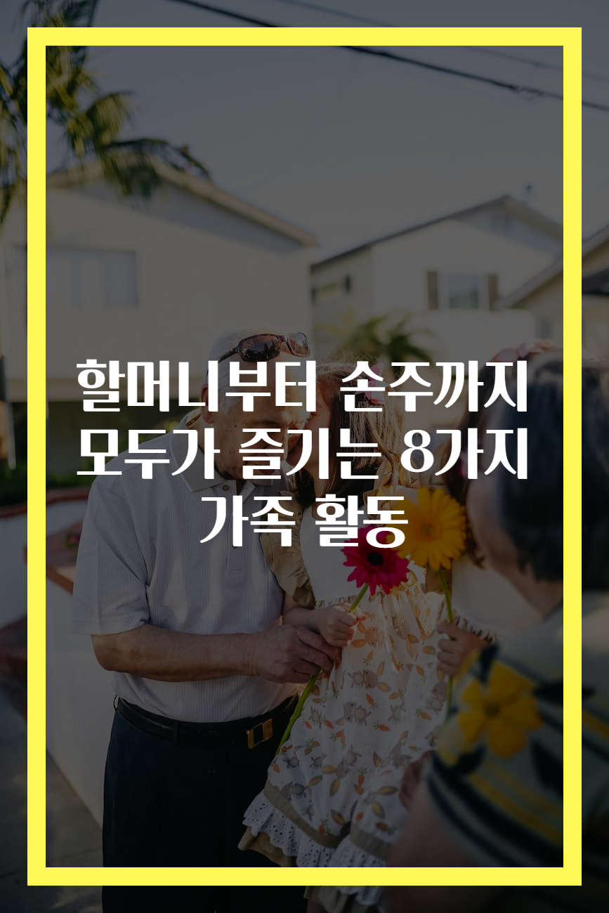 가족은 우리의 삶에서 가장 중요한 존재 중 하나입니다. 가족과의 유대는 정서적 안정감을 제공하고, 서로의 소중함을 깨닫게 합니다. 다양한 가족 활동을 통해 우리는 이러한 유대감을 더욱 강화할 수 있습니다. 무엇보다도, 할머니부터 손주까지 모두가 함께 즐길 수 있는 활동들은 친밀함과 대화의 기회를 제공합니다. 이러한 활동은 가족 구성원 모두가 참여할 수 있어야 하며, 연령에 구애받지 않는 재미있는 요소를 포함해야 합니다. 이 글에서는 할머니와 손주가 함께 즐길 수 있는 8가지 가족 활동을 소개하려고 합니다.
